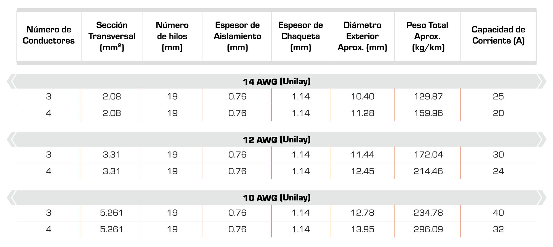 Cable SAWA para 0.6 /1.0 kV, con tres o cuatro conductores de cobre, aislados individualmente con polietileno reticulado (XLPE).